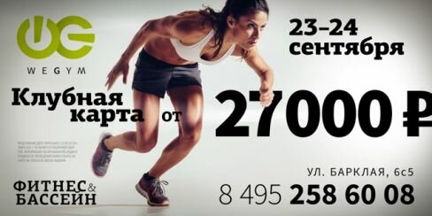 Только 23 и 24 сентября Клубная карта в фитнес-клубе WeGym Барклая от 27 000 рублей.